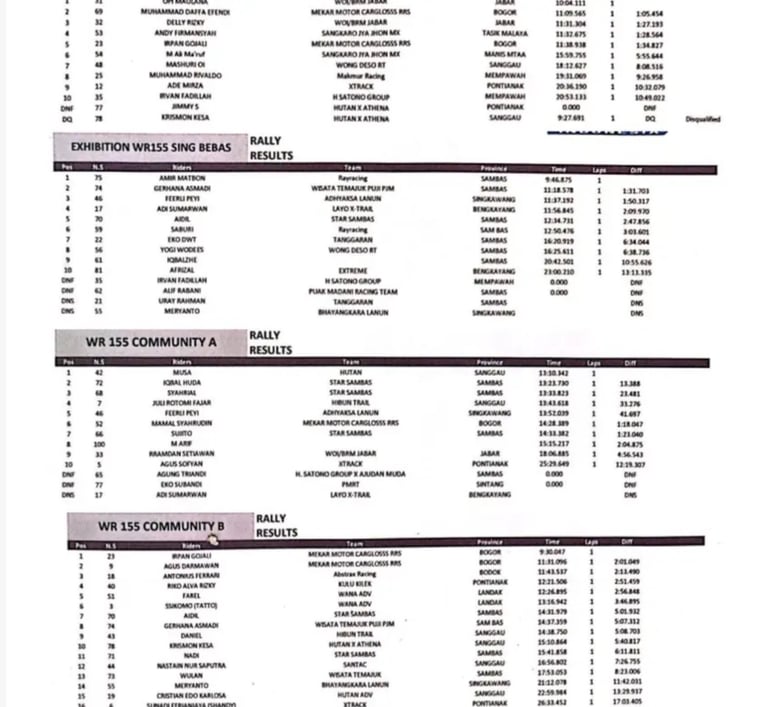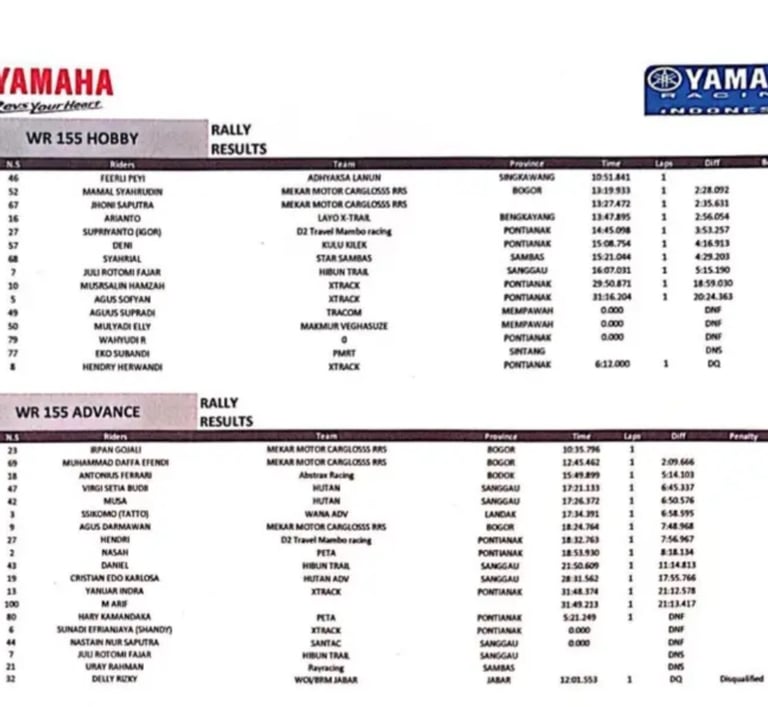 Sambas, Kalbar - Berikutnhasil lengkap Yamaha Enduro Challenge Sambas 2025